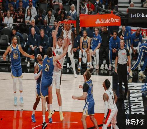 9分6板1帽!杨瀚森又创1新高!开拓者遭18分大逆转,库里轰28分