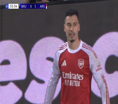 阿森纳30布鲁日!马丁内利边路过人爆射破门!门将扑救无可奈何 -